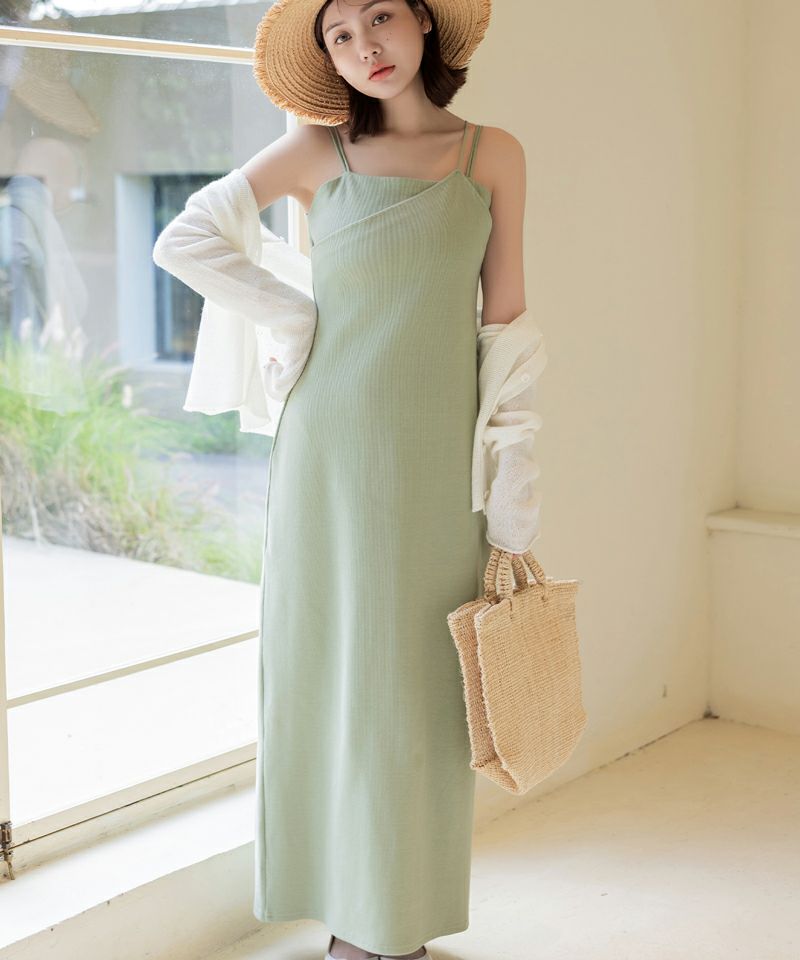 着痩せ設計でスタイルアップが叶う 2WAYリブカップ付きワンピース