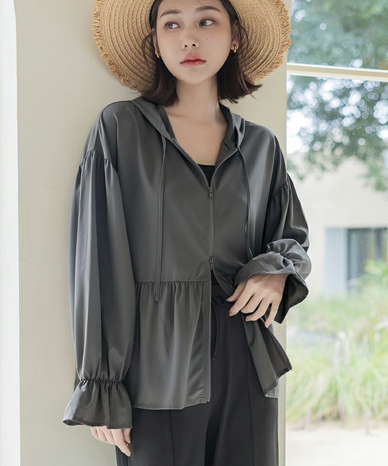 フロントジップだから、さっと羽織れてメイクや髪も崩れにくく、