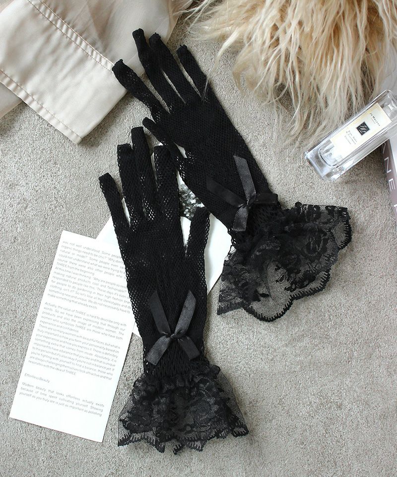 ダイヤモンドレースとフラワーレースの透け感が美しいショートグローブ。